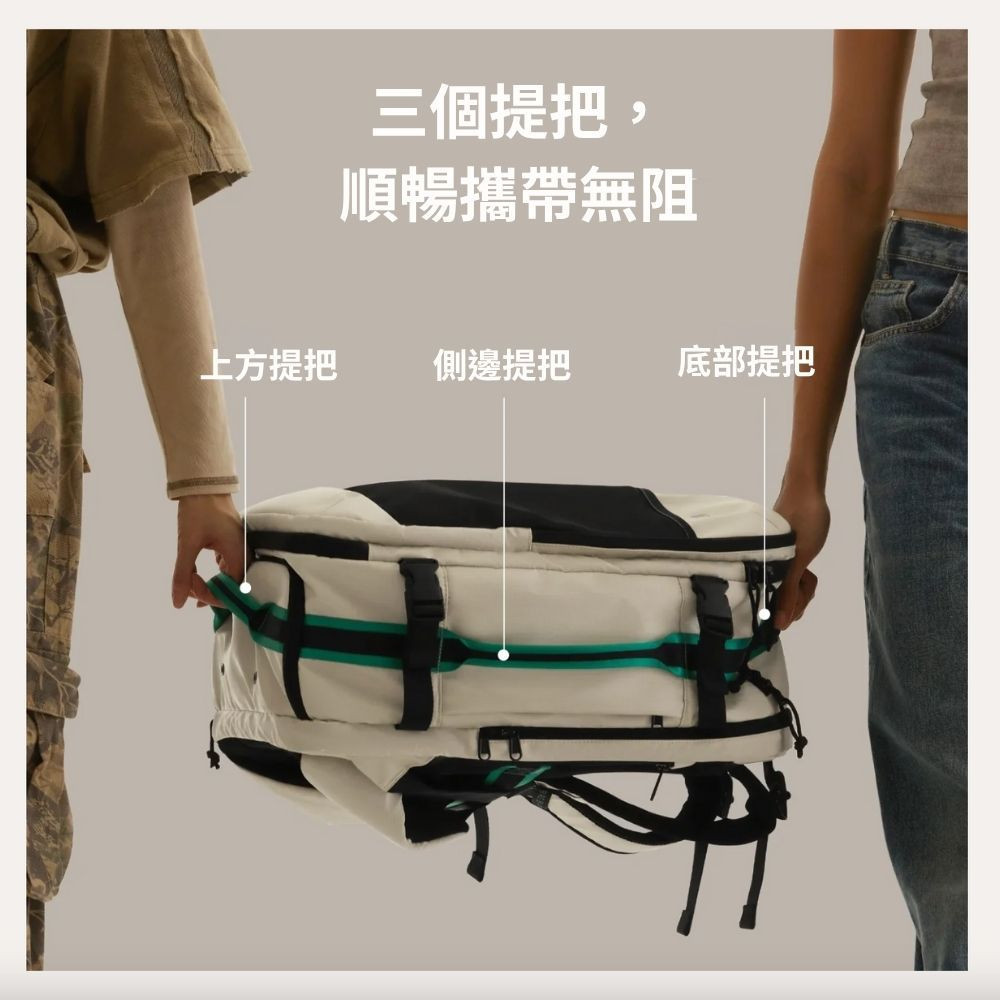 ■ 快速提取設計|外層三邊強固的手提把設計,可雙人快速提取背包。