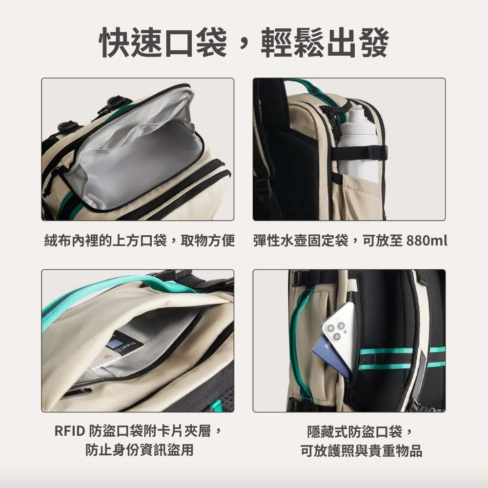 大容量40L靈活空間,可適用長途旅行、短途旅遊、工作出差、露營登山情境