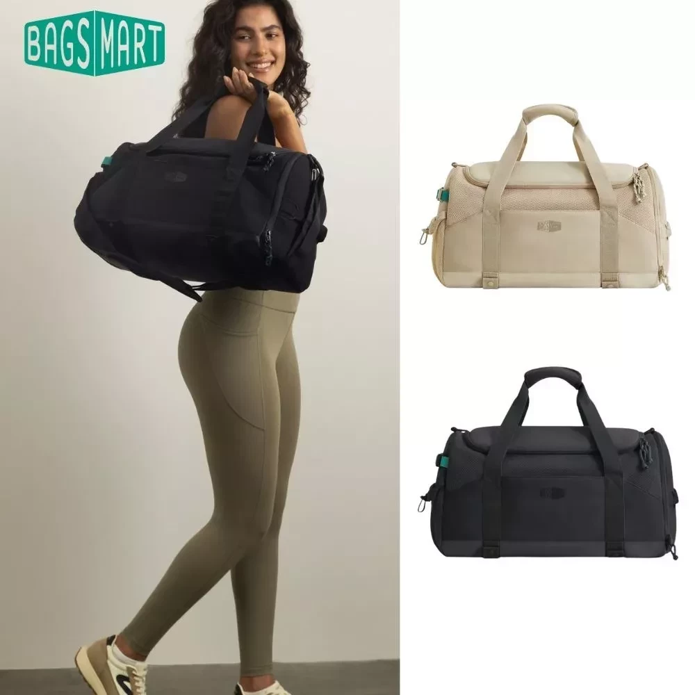 具備多隔層口袋,能輕鬆分類所有物品。前拉鍊口袋附鑰匙扣,讓您的常用小物與鑰匙隨手可得,取用更便利。特設的獨立濕袋能完美隔離健身後的衣物或濕毛巾,保持包內乾淨。底部固定帶讓您能輕鬆攜帶瑜珈墊等健身裝備,搭配可調節扣帶的側袋,穩穩收納 40 oz大水瓶,讓您的出行裝備一次到位!