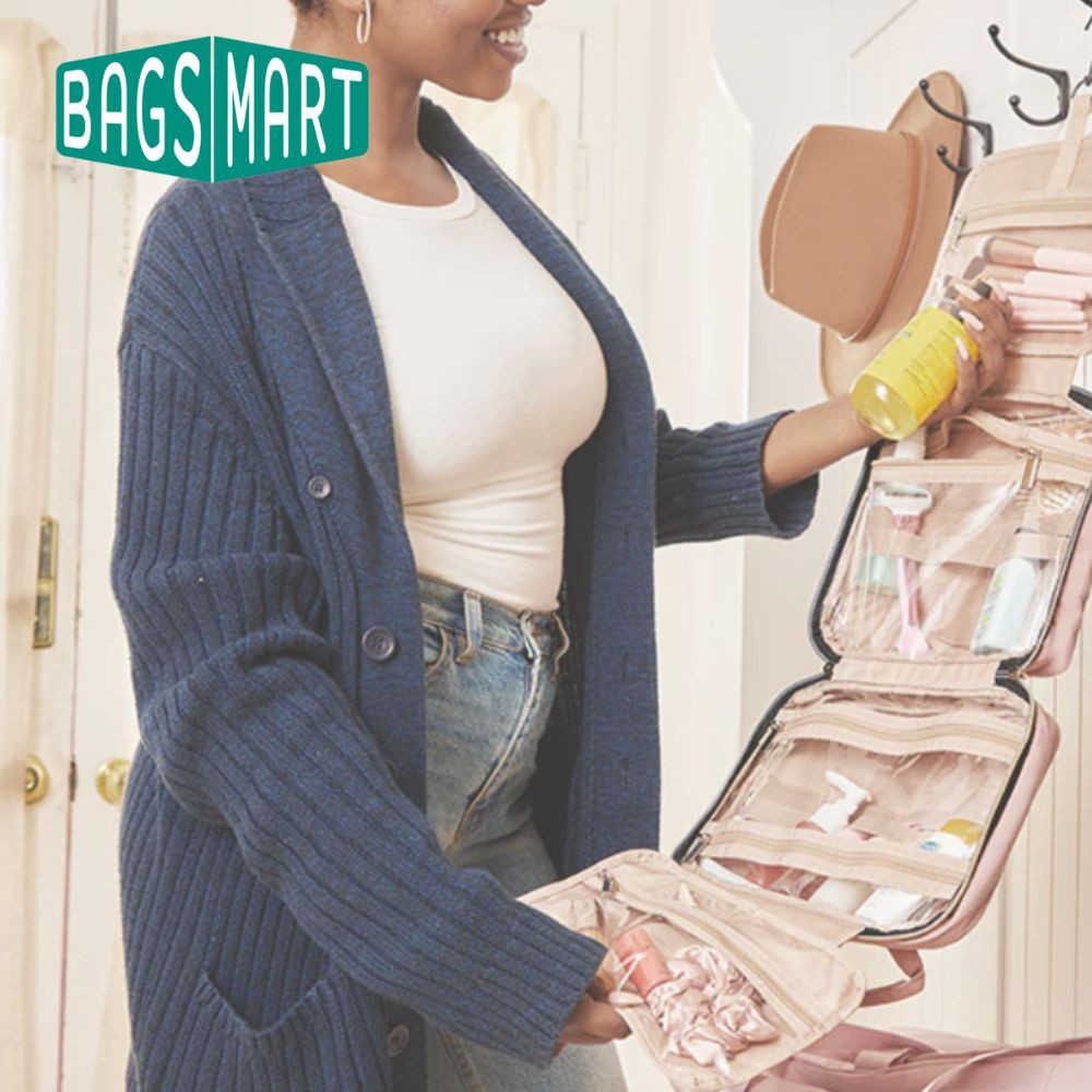 Bagsmart掛式防水化妝包以精巧設計與貼心分層,讓旅途中的每一刻都井然有序。多隔層大容量設計,輕鬆分類所有旅行與日常用品;透明隔層一眼即見內容物,取用迅速不手忙腳亂。防潑水絎縫面料柔韌耐磨,長久使用依然如新。搭配可擴展容量與 360° 旋轉金屬掛鉤,無論置於行李箱或懸掛於浴室,都能完美融入每種旅程場景。一包在手,整趟旅程都整潔有型。