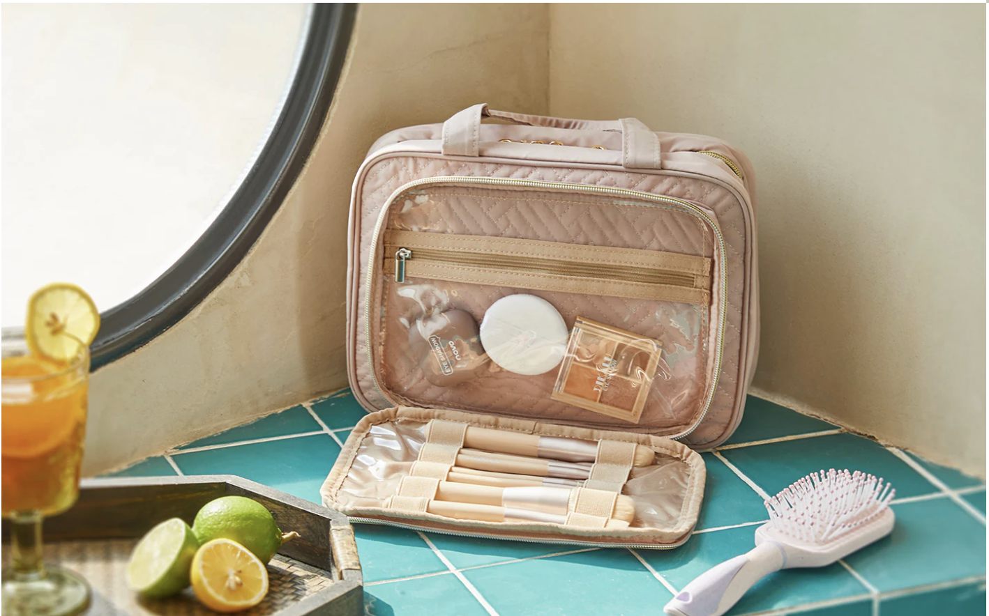 將複雜的收納化繁為簡。無論是保養品的瓶瓶罐罐還是化妝用的零散棉花棒化妝棉,都能在展開的狀態下隨意歸位。當您準備出發時,包包輕巧捲起,體積瞬間縮小,完美適配各種尺寸的行李箱,極大化您的行李空間。
