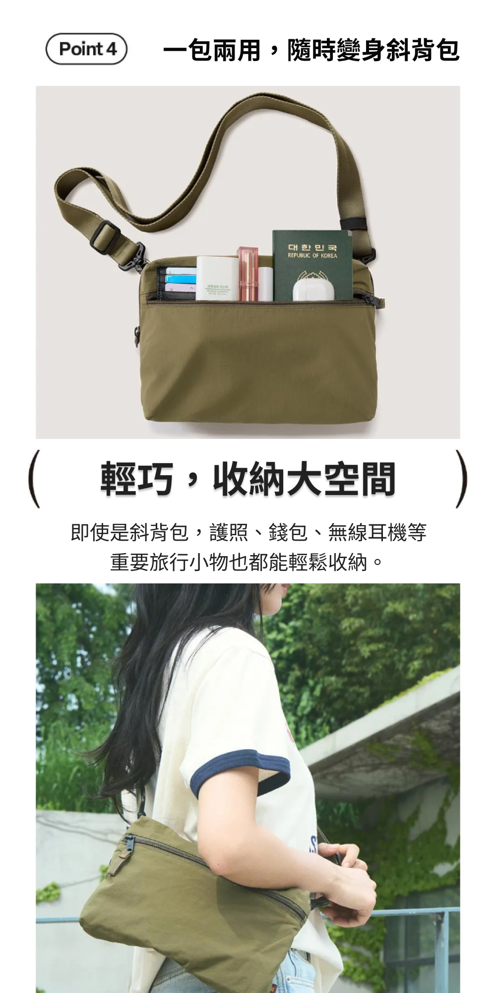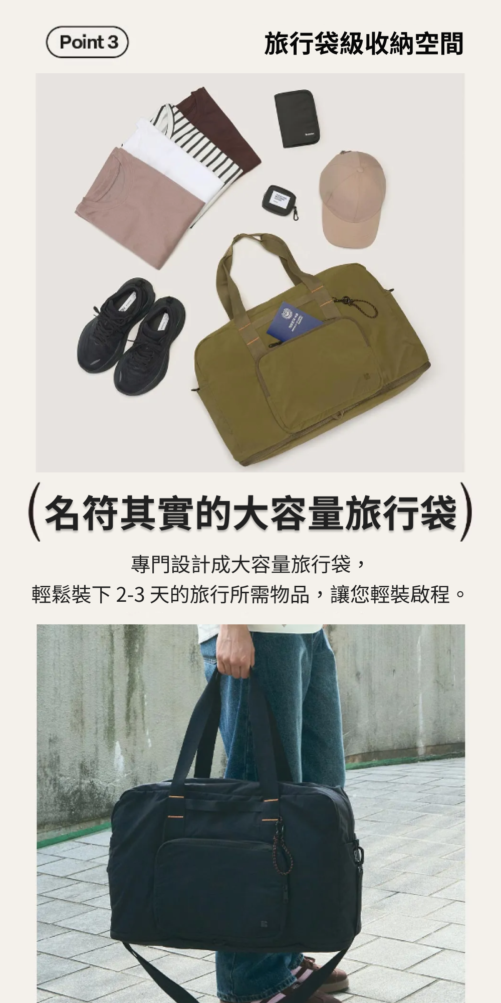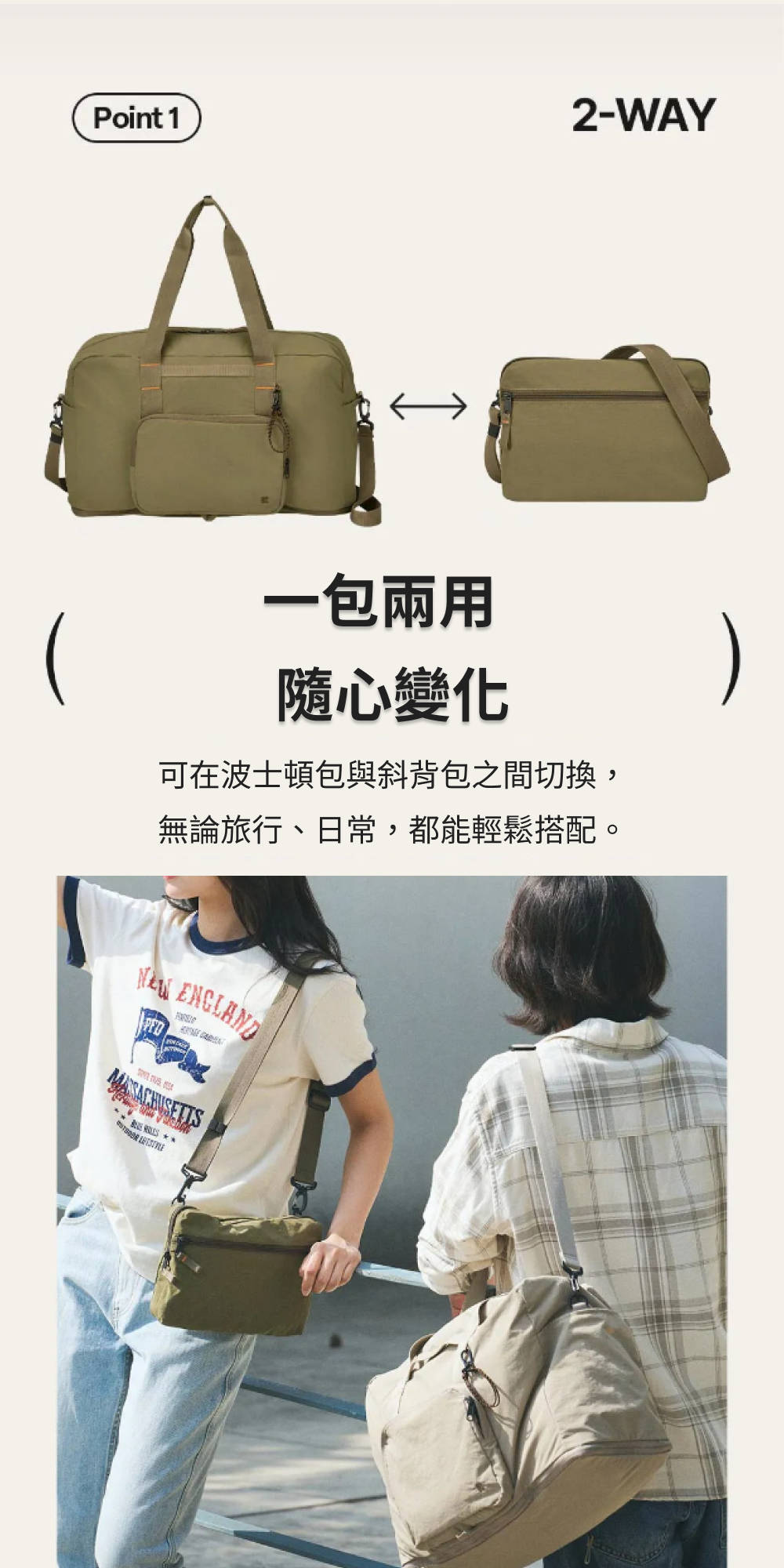 ■ 一包兩用|可以從波士頓包摺疊成斜背包,適用於旅行與日常休閒。
