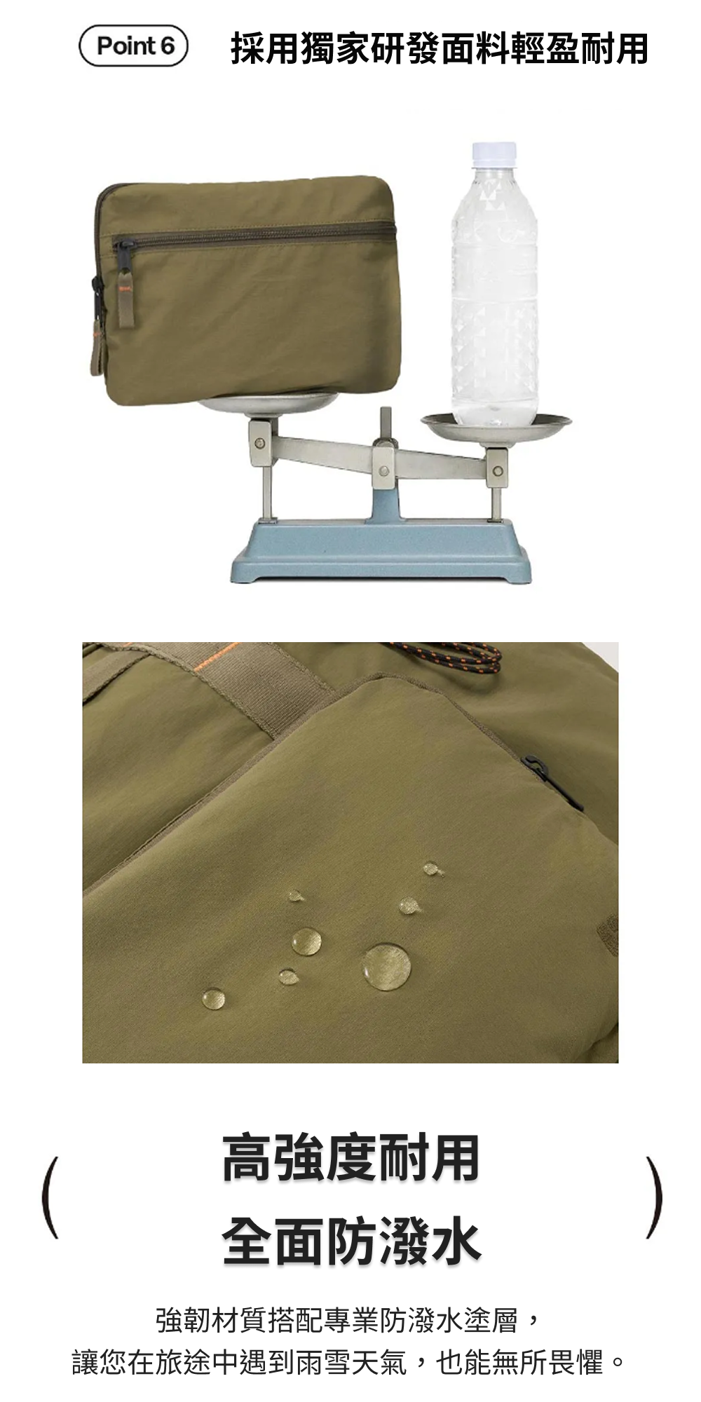 ■ 防潑水性|高度耐用防潑水材質,各種環境皆可使用。