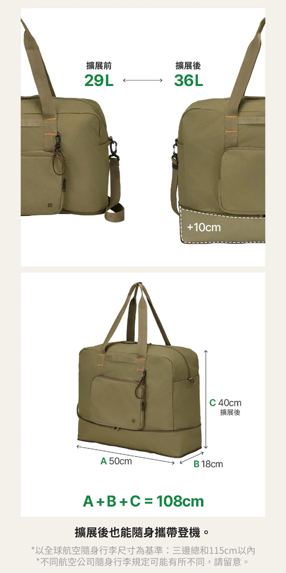 ■ 擴充功能|波士頓包29L再擴充成36L,依照旅途需求調整。