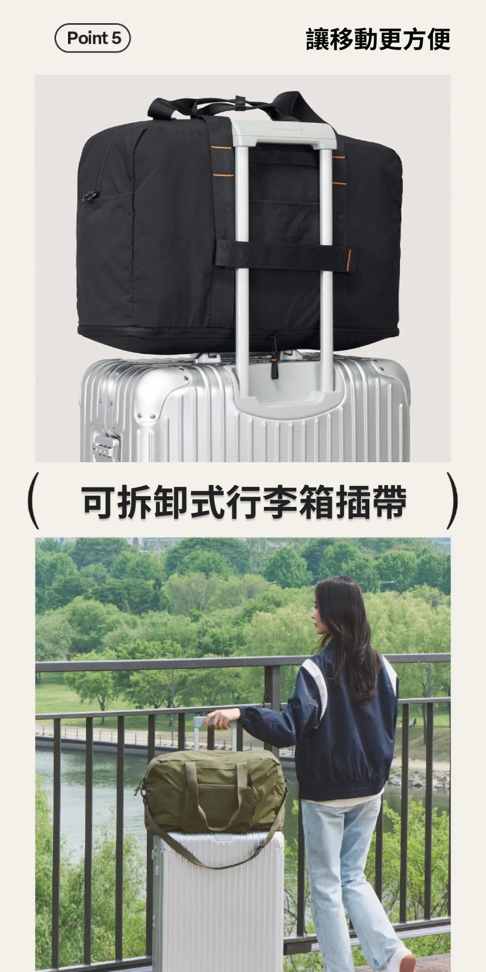 ■ 行李束帶|側邊行李束帶設計,可掛至於行李箱上,方便移動。