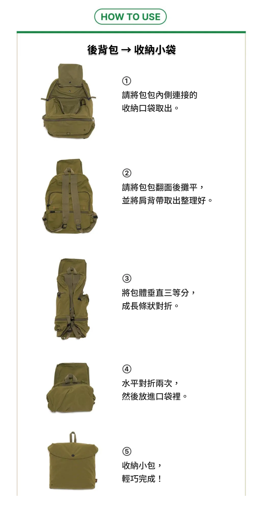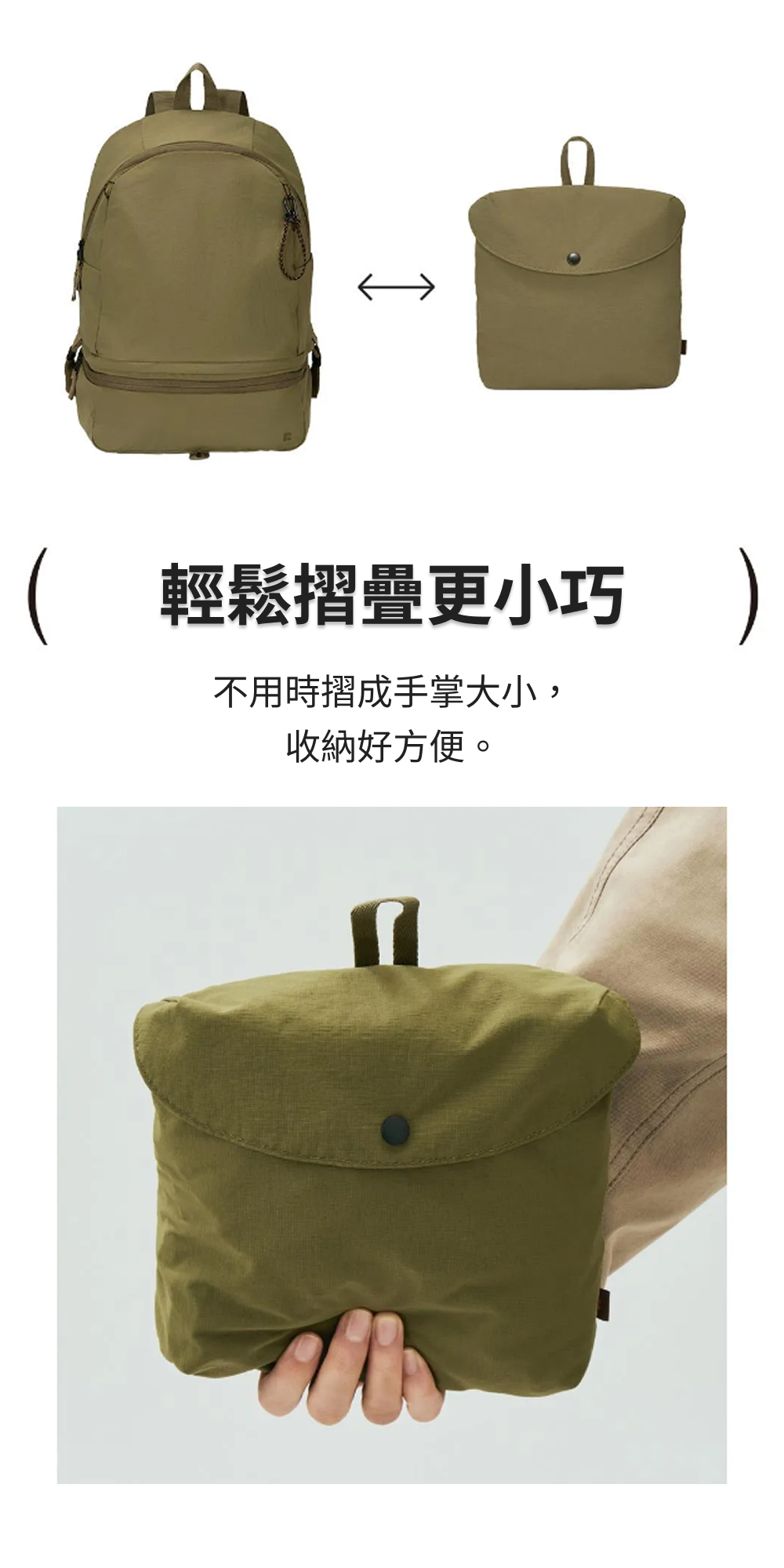 ■ 折疊收納|不使用時可以將背包收納成小包,輕鬆收納於車廂或家中各處。