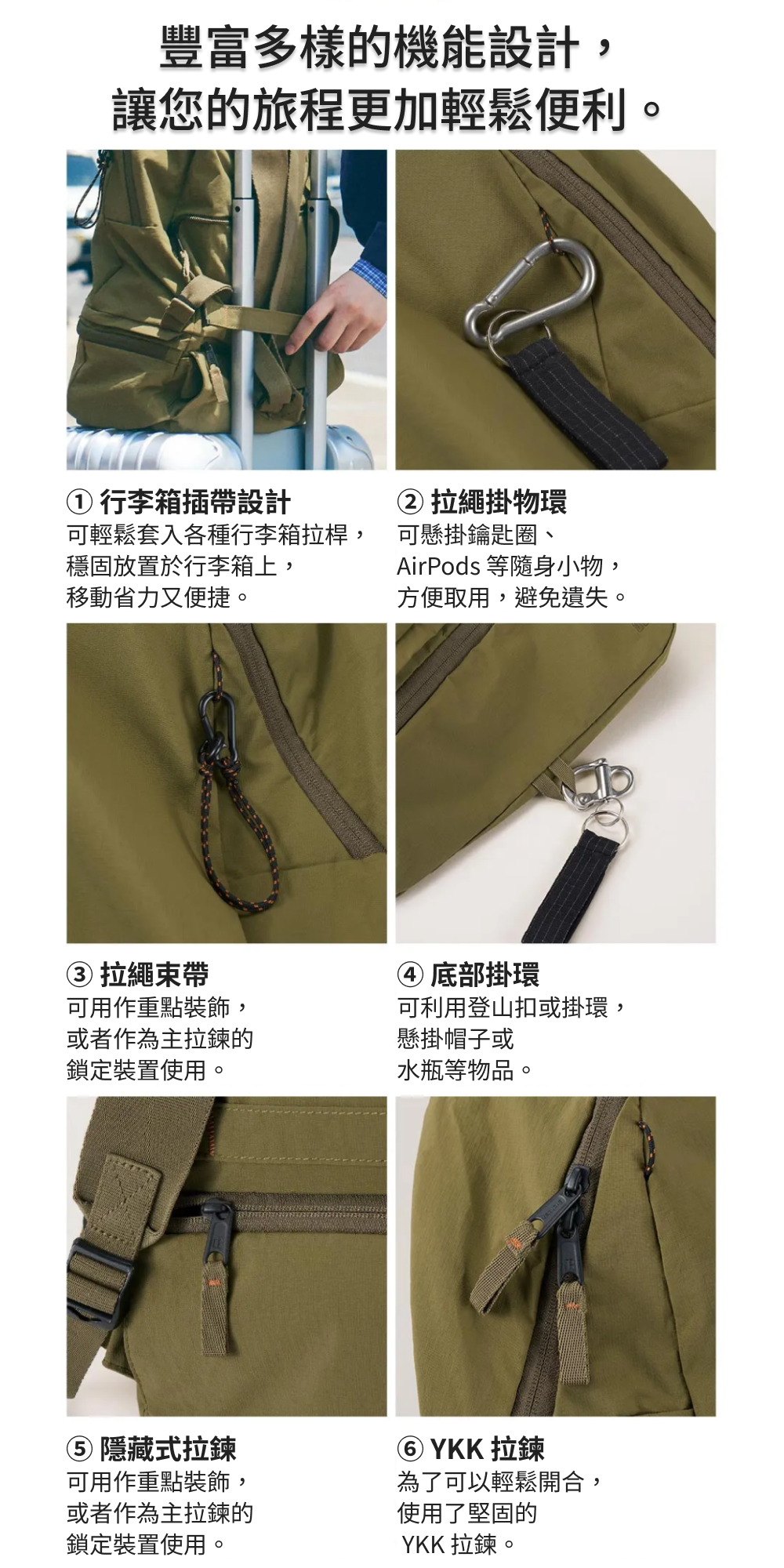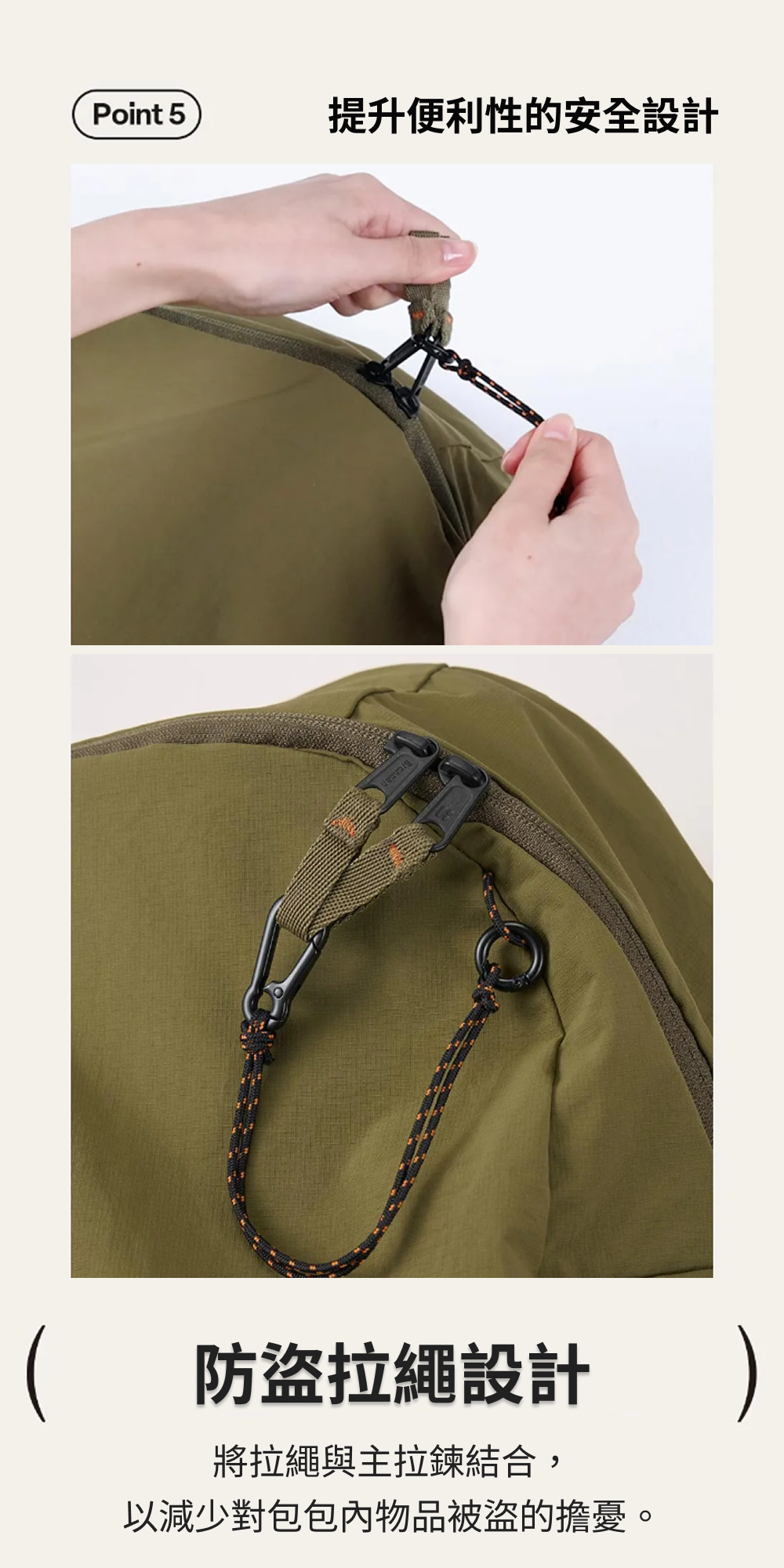 ■ 防盜功能|主拉鏈有防盜繩設計,可減少旅途中被盜風險。