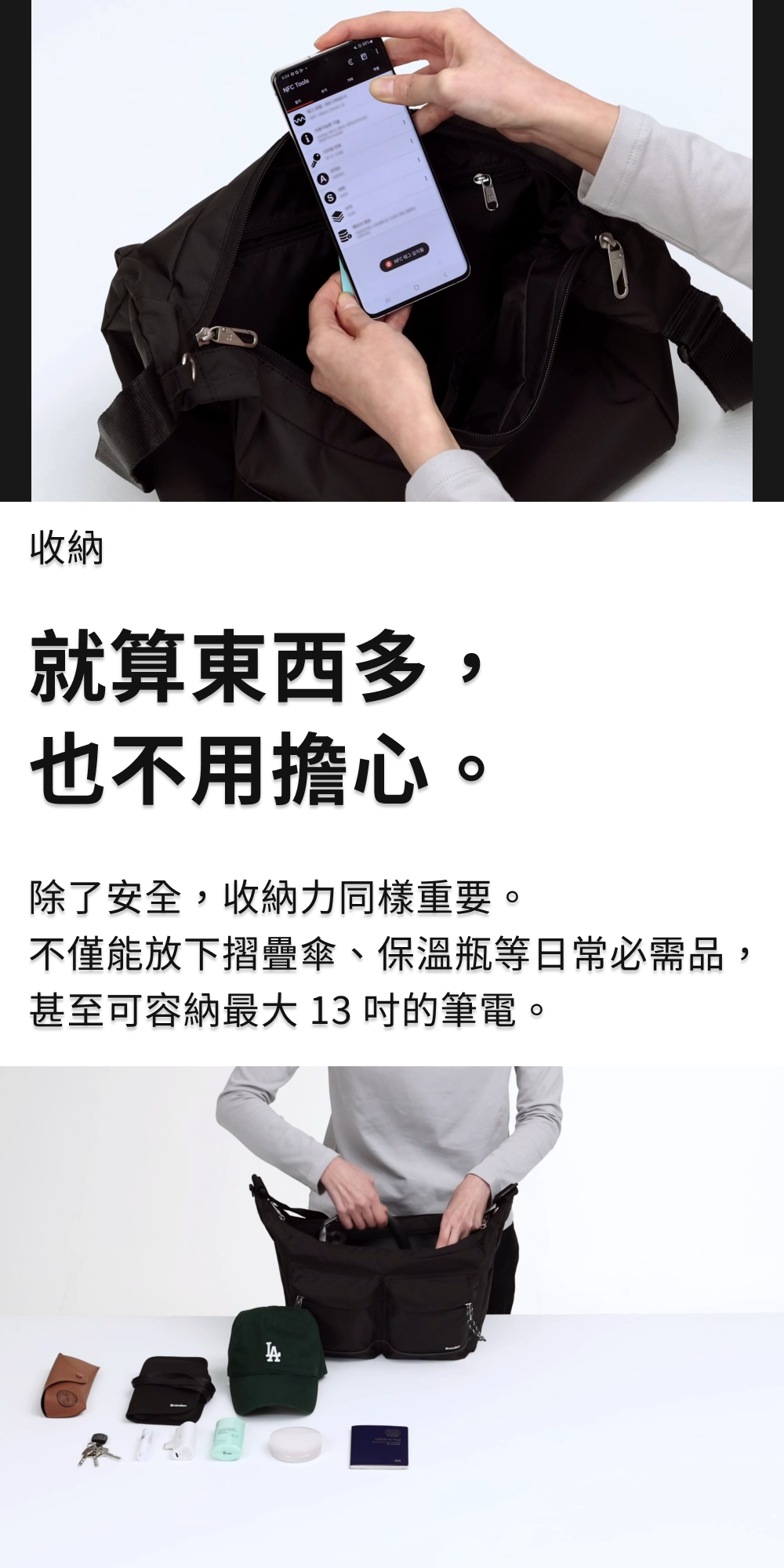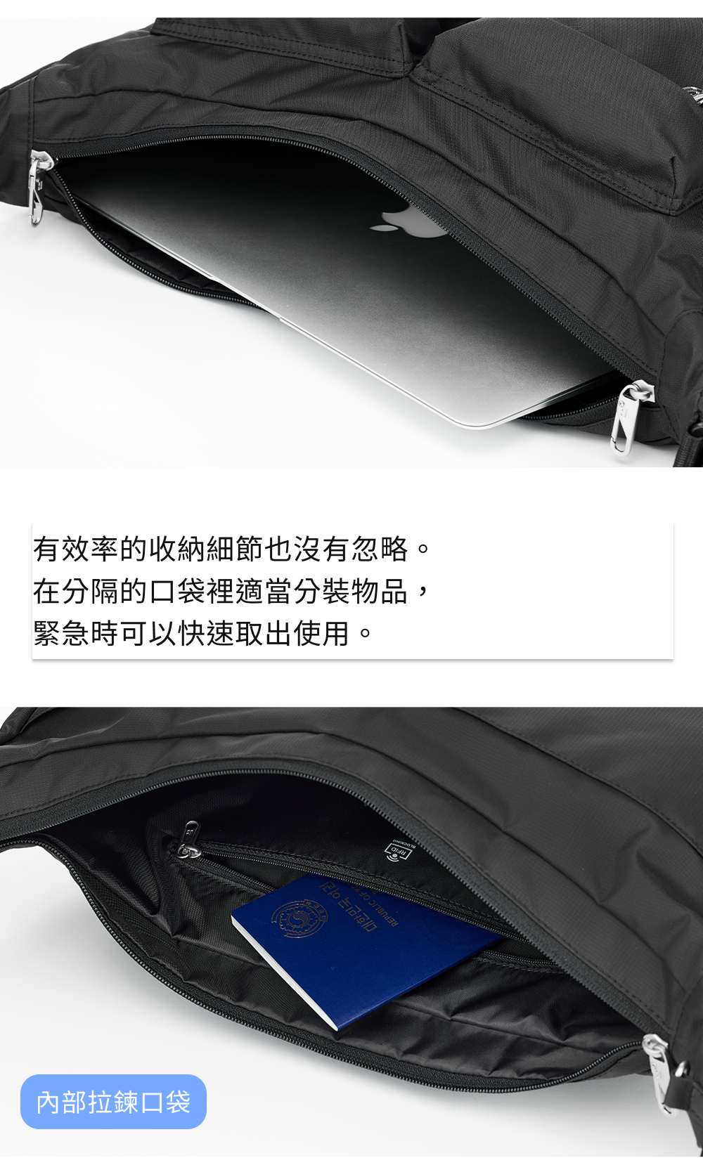 側背包L號+護照包(黑色)