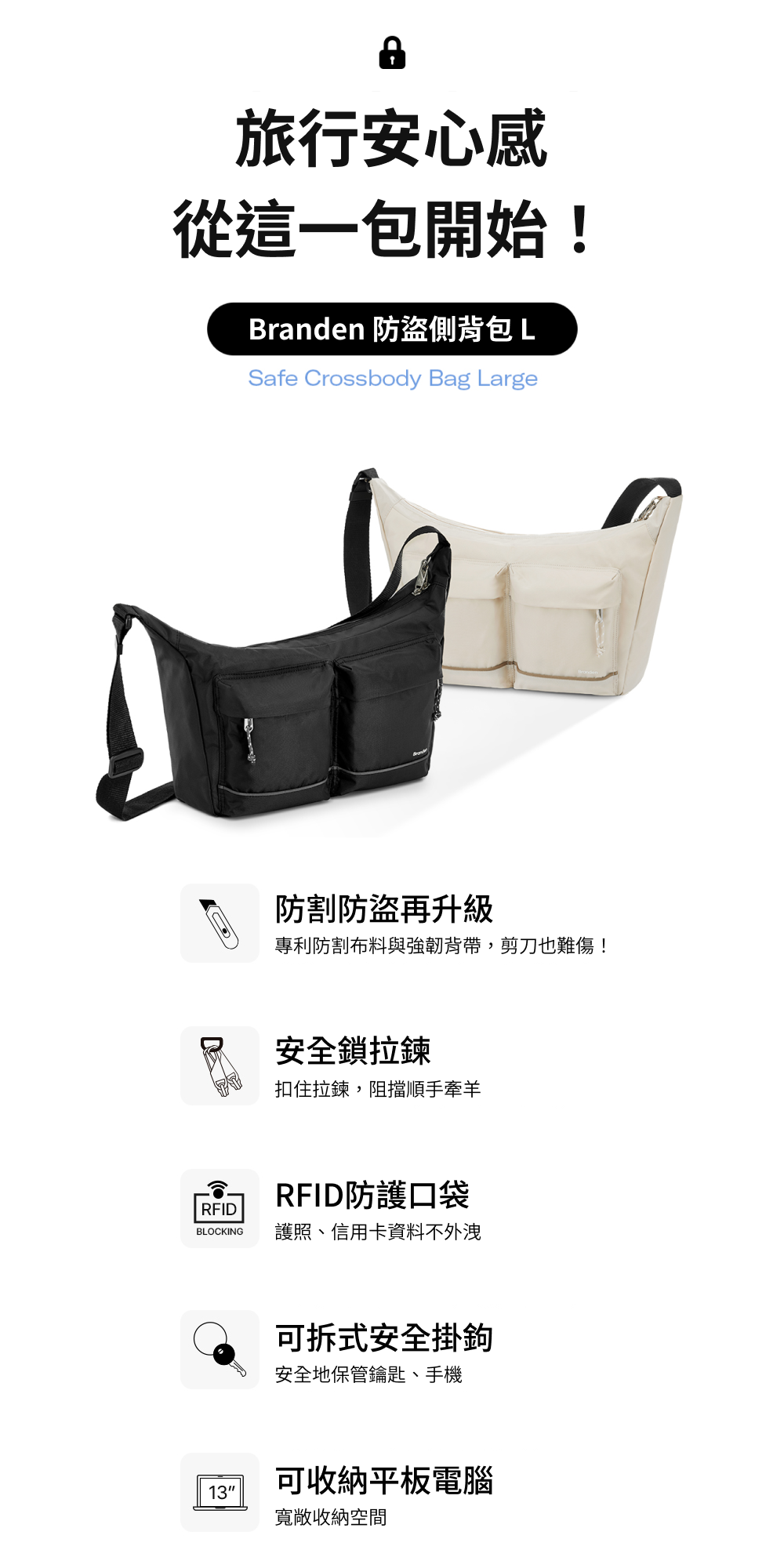 【韓國Branden】旅行防盜機能包 L號,I Like It