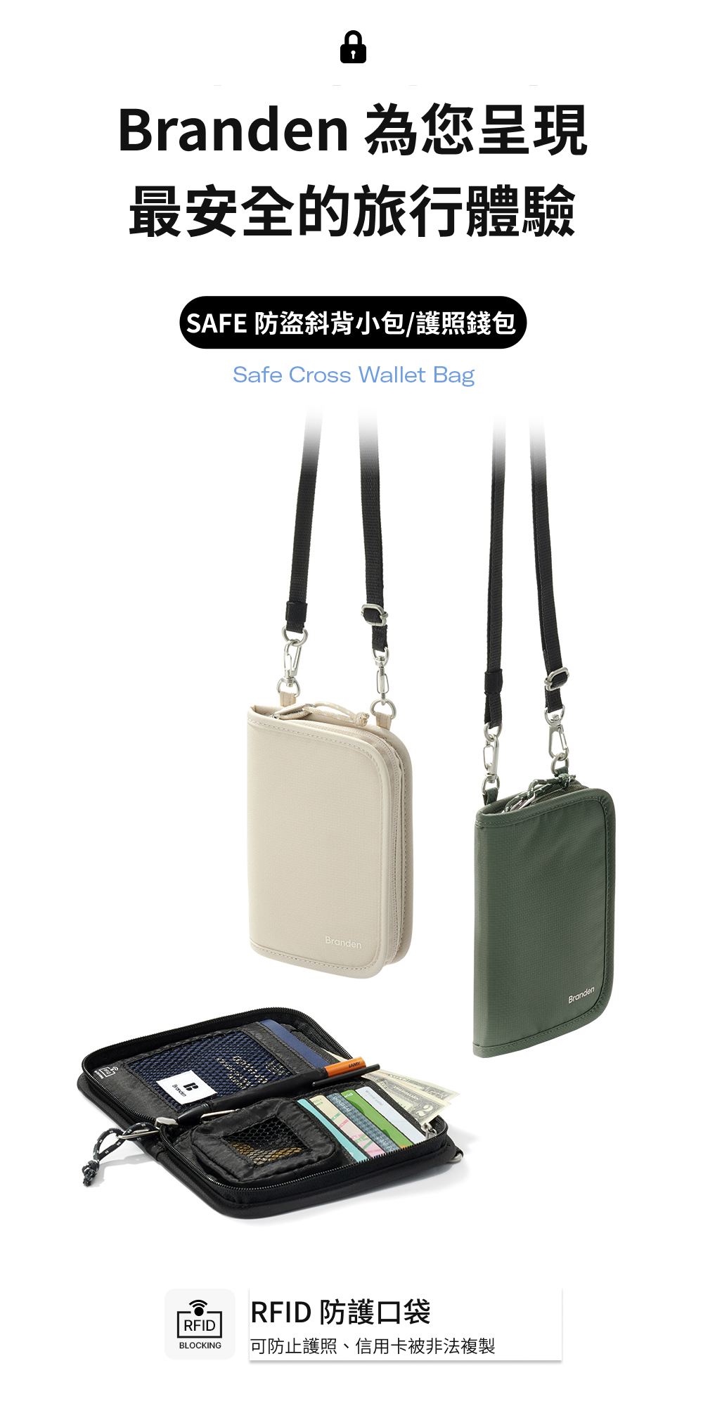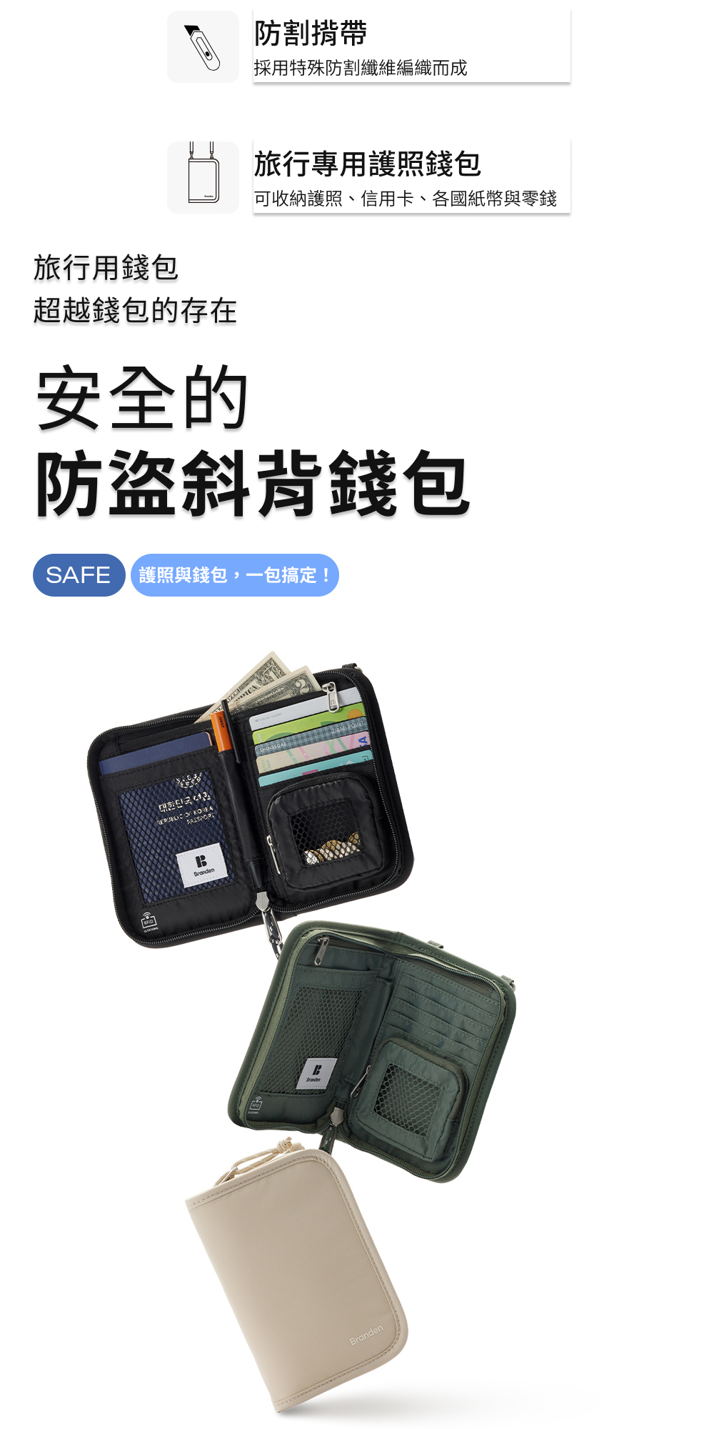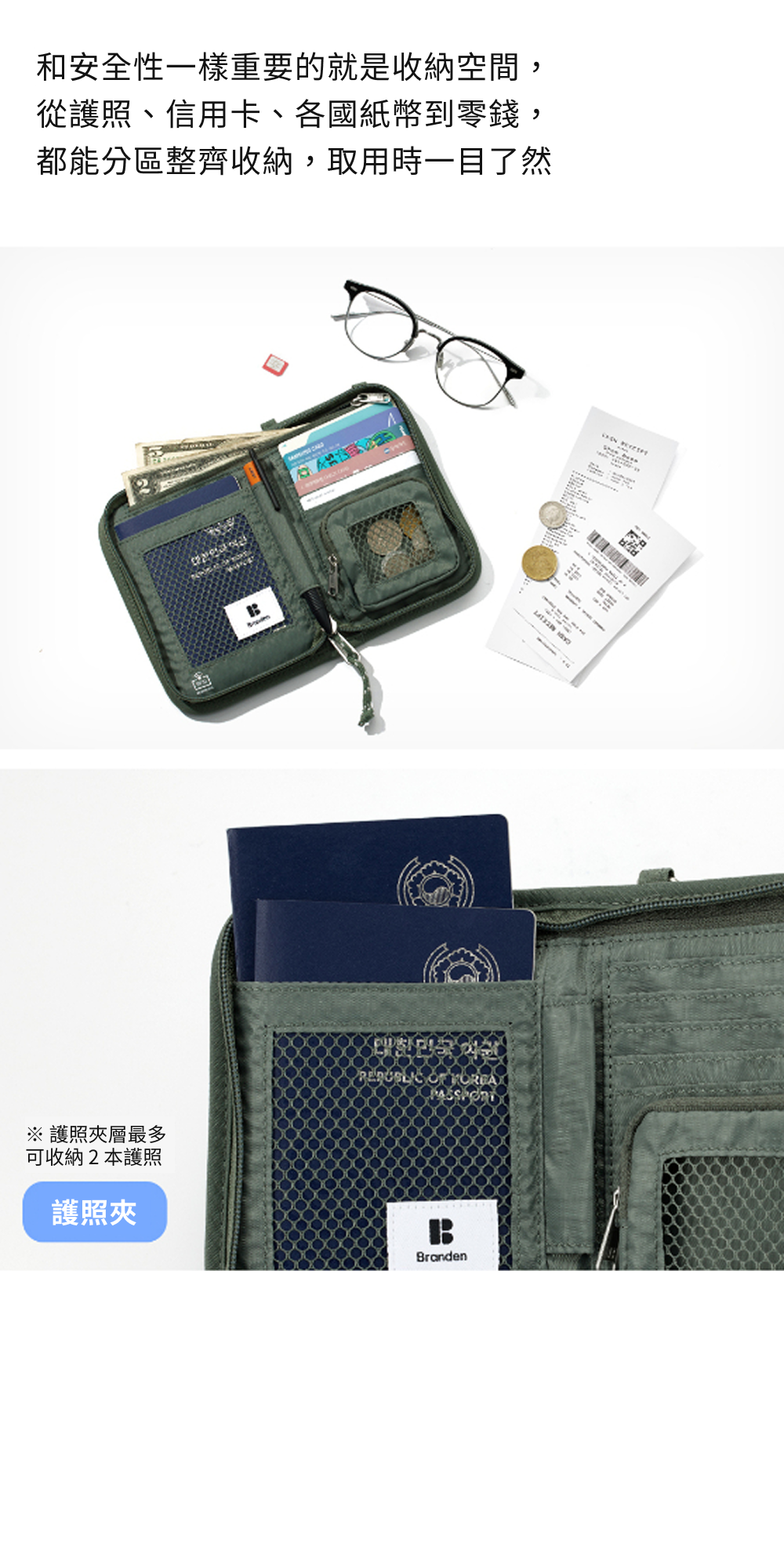 【韓國Branden】防盜機能護照錢包 護照包 零錢包 防盜錢包 防盜側背包