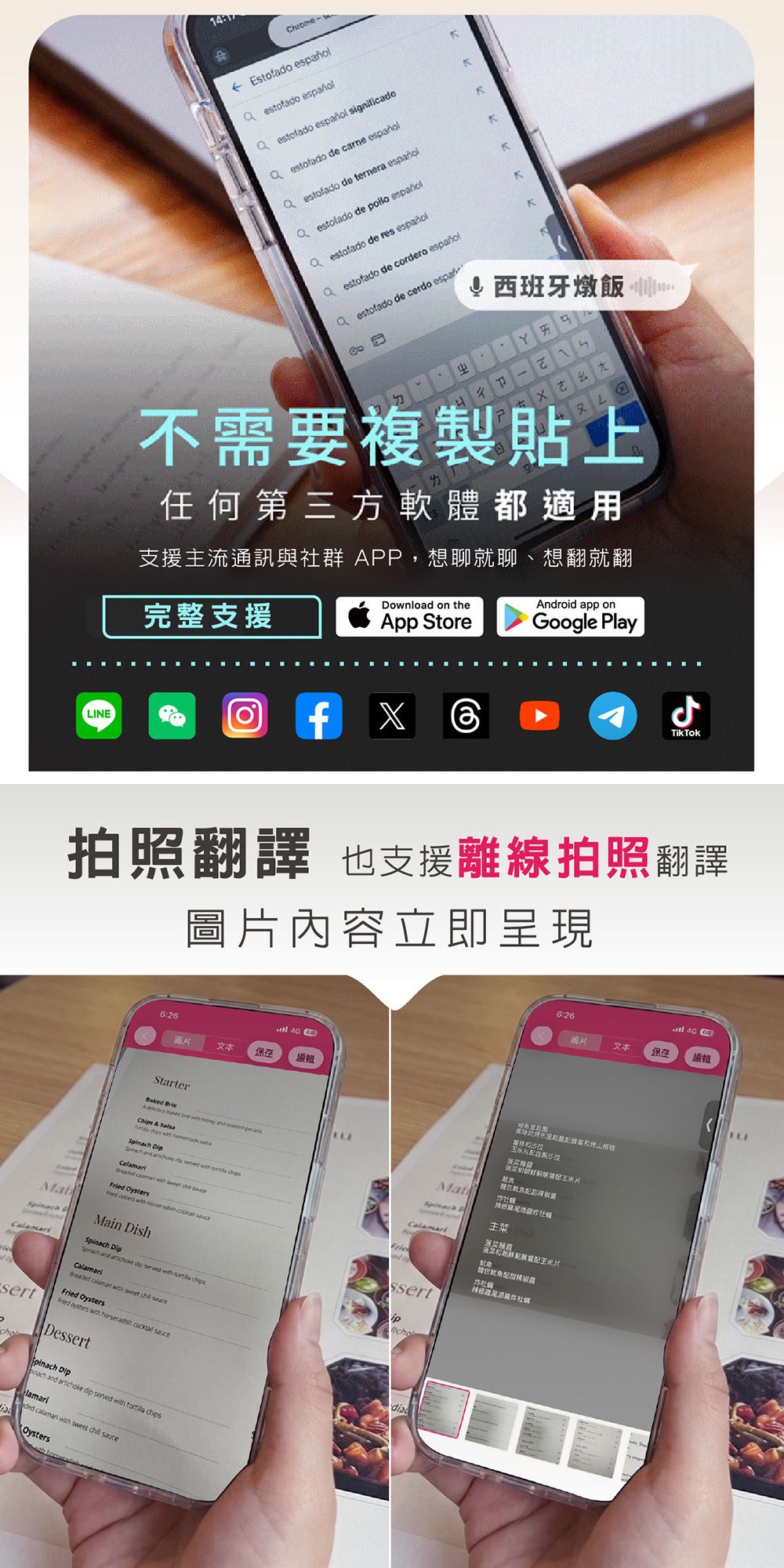 ■ 適用多種APP|可用於Line、IG、Google搜尋、Tinder、Netflix、YouTube影片等APP,無需複製貼上,APP間自由切換。