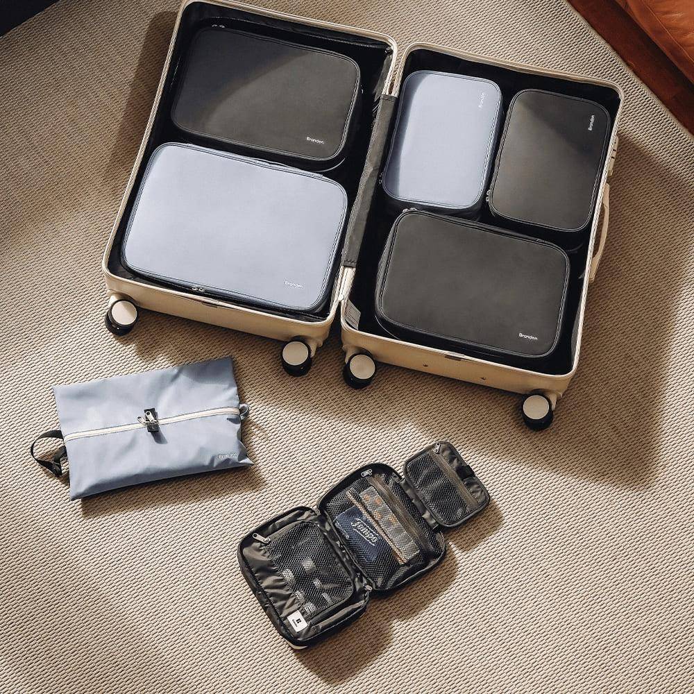尺寸購買請參考建議組合。依照行李箱型號的不同,若發生行李箱難以闔上的情形,請稍微減少收納袋中的物品數量。