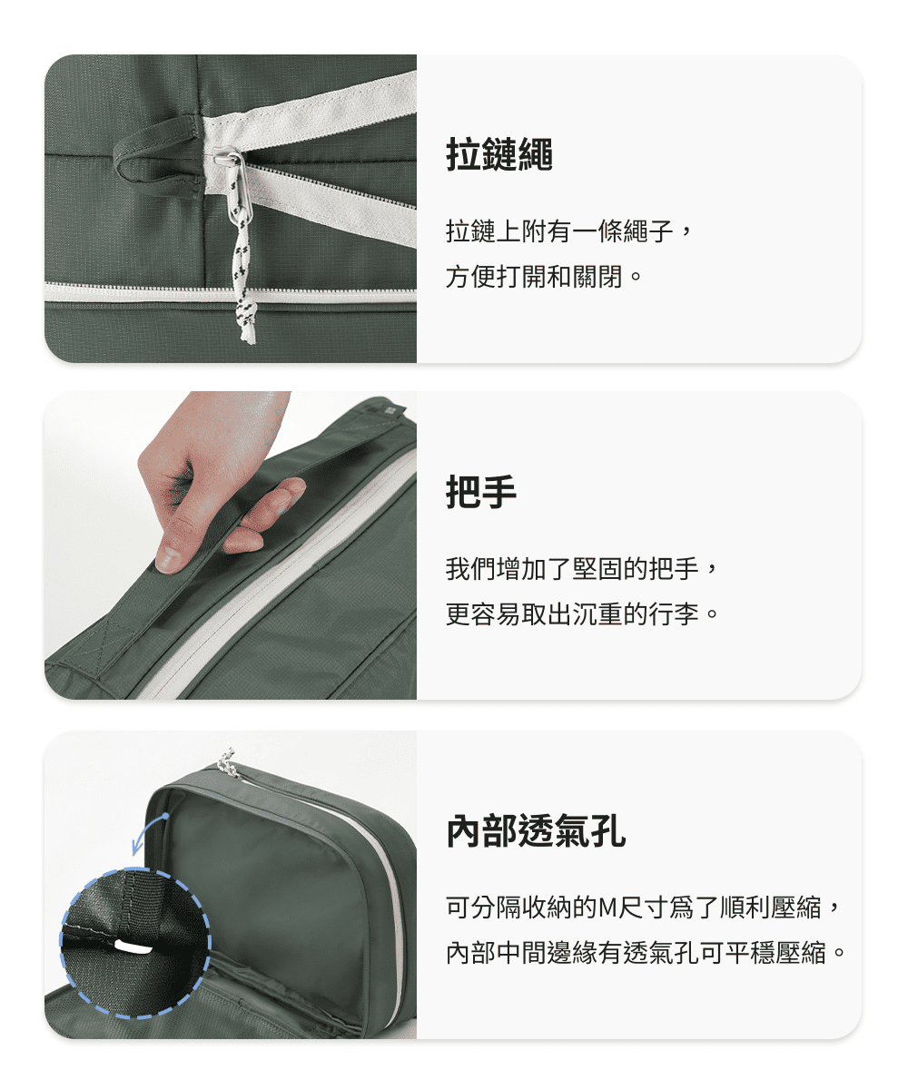 ■ 免真空抽氣,專屬排氣設計壓縮收納不費力。