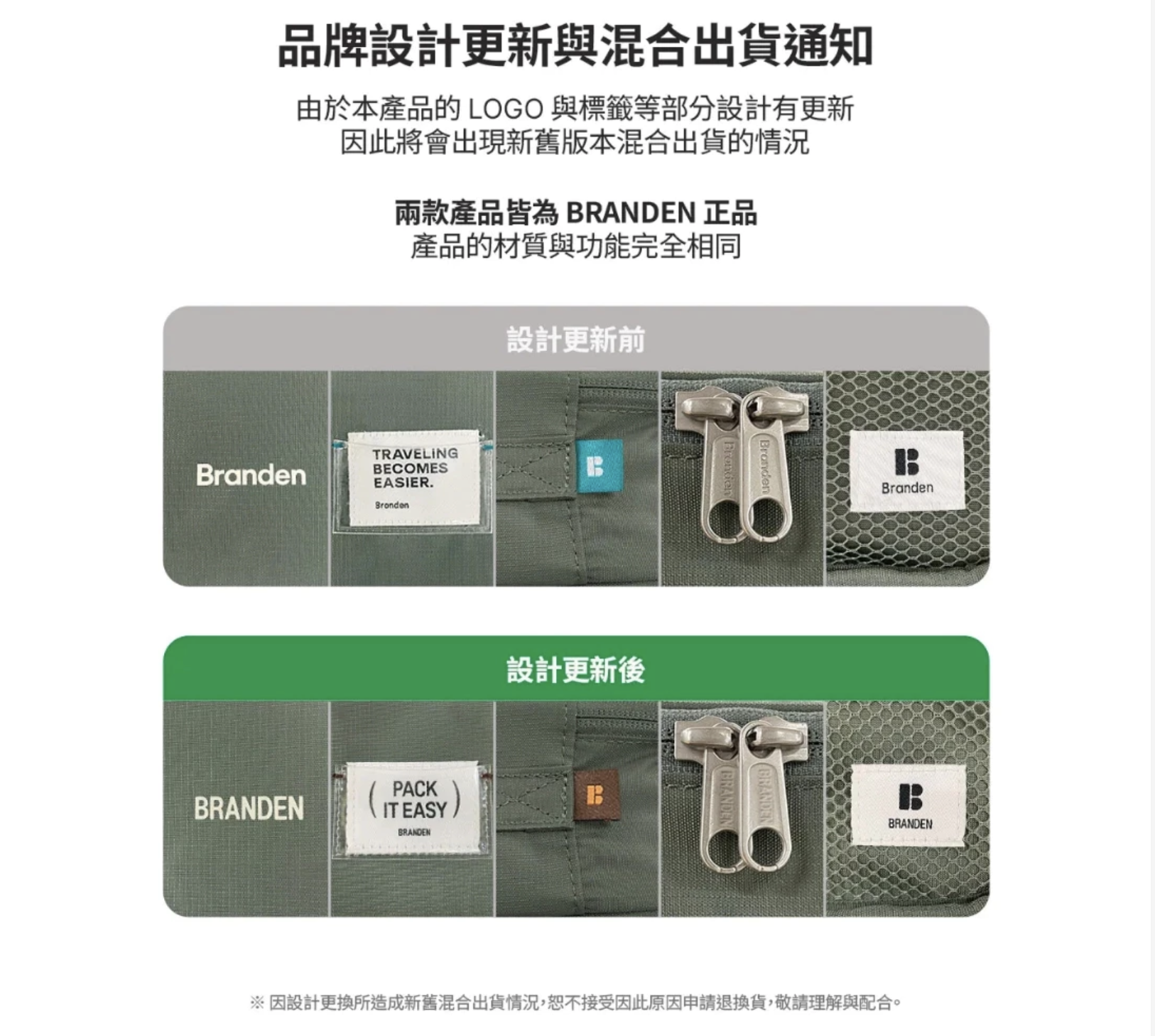 為了與BRANDEN顧客一起攜手度過悠長旅程,我們提供免費售後服務(保固期為購買產品後的6個月內)。