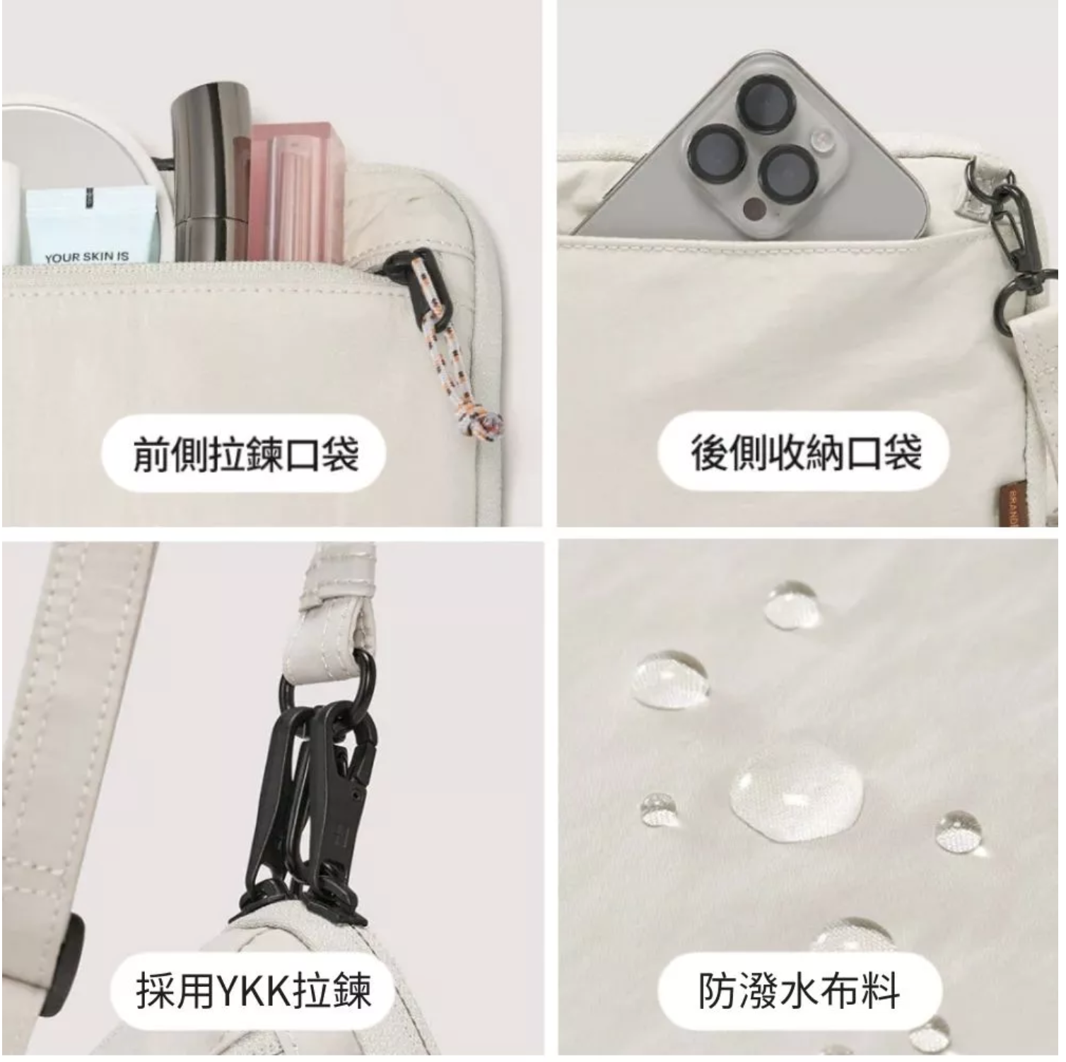 A.布料經過防潑水塗層,能有效阻擋水分滲入。但若完全浸入水中,縫線處仍可能滲水,請注意避免長時間浸水。