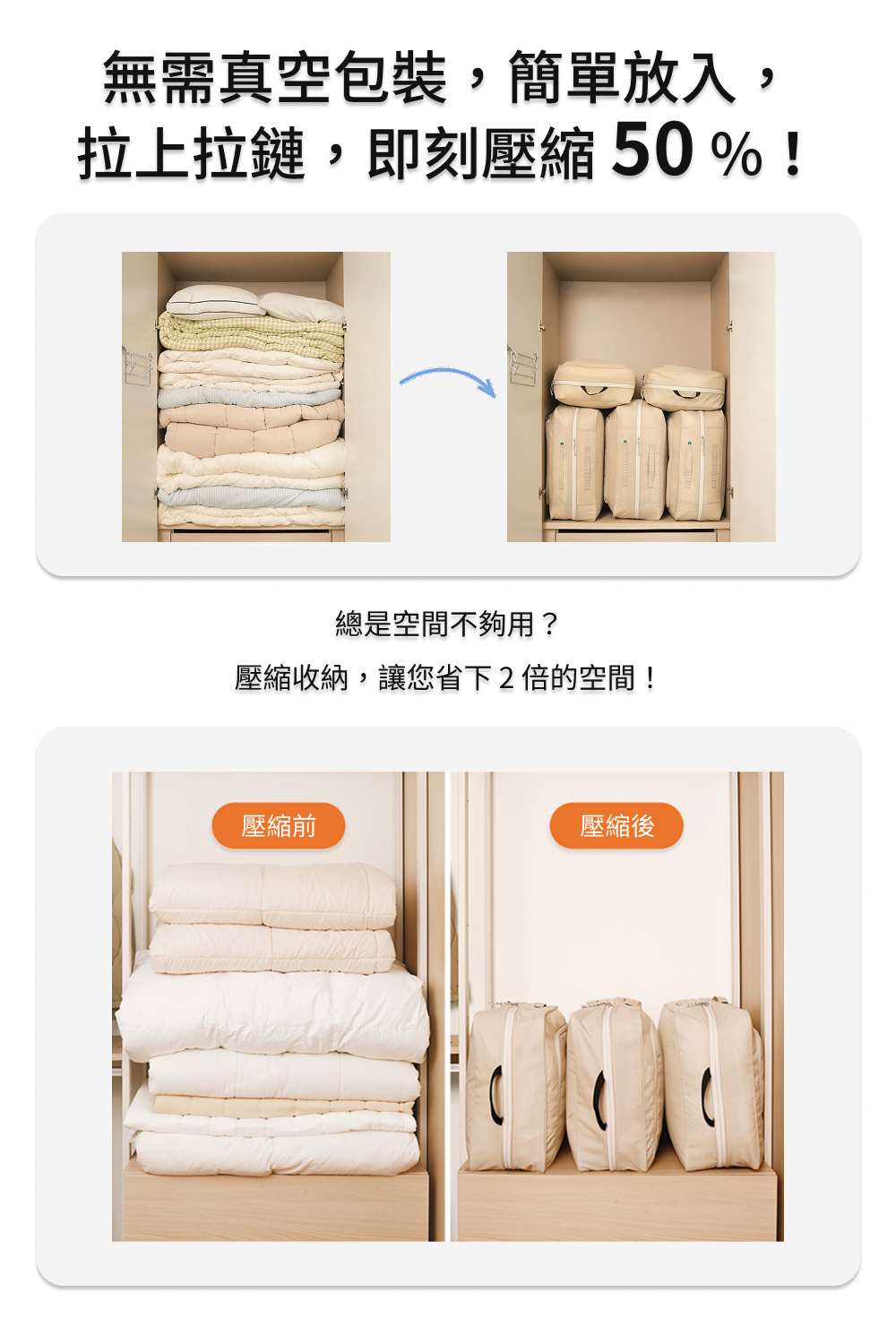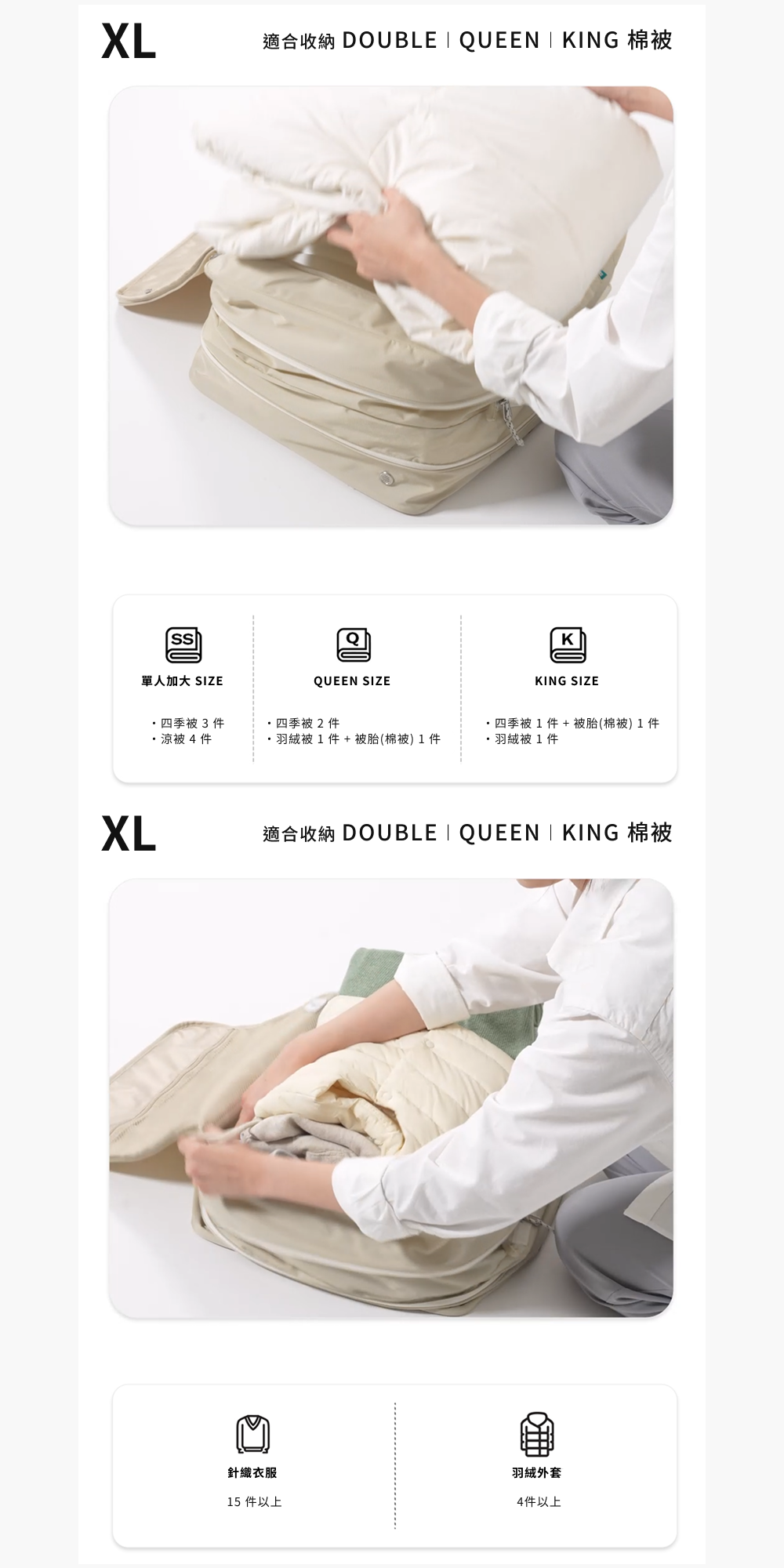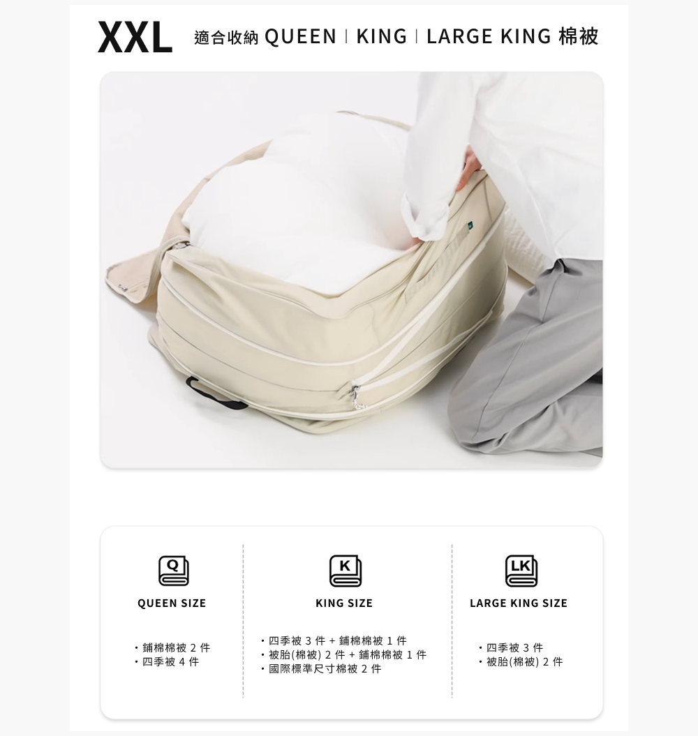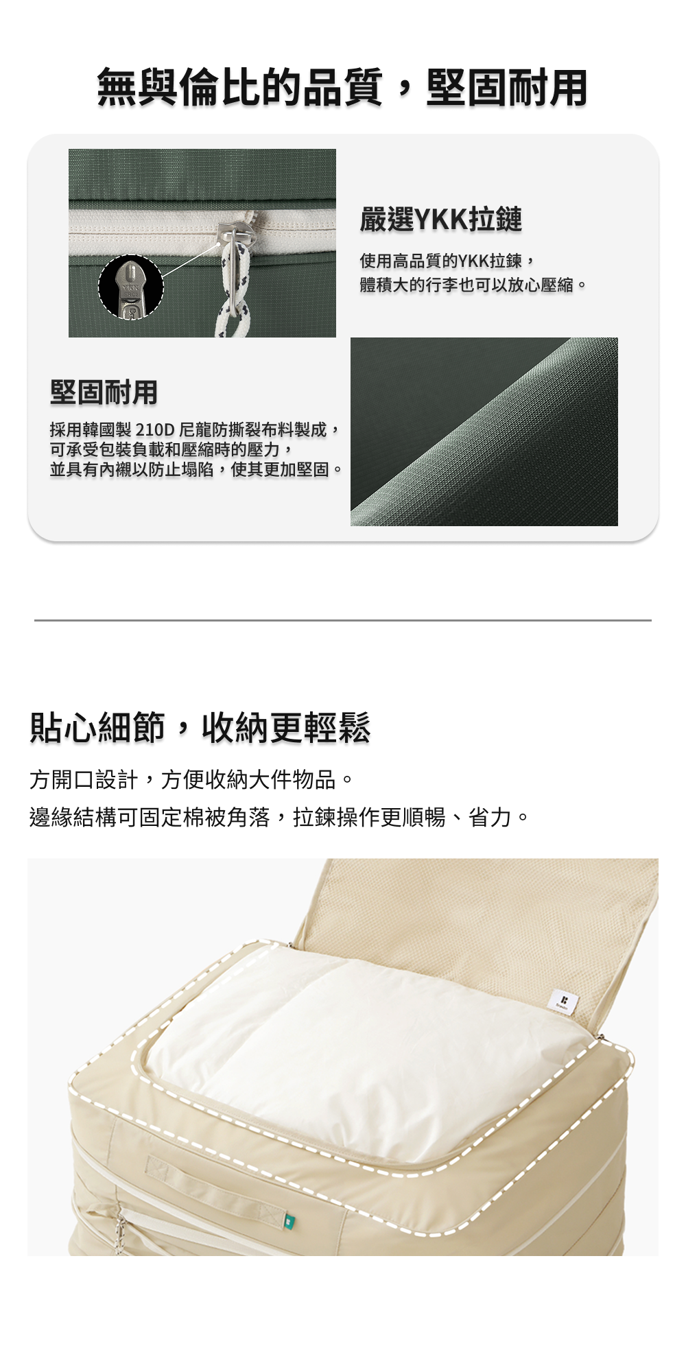 1.若放入過多的衣物可能難以拉上拉鍊,建議只放入約90%體積的物件。